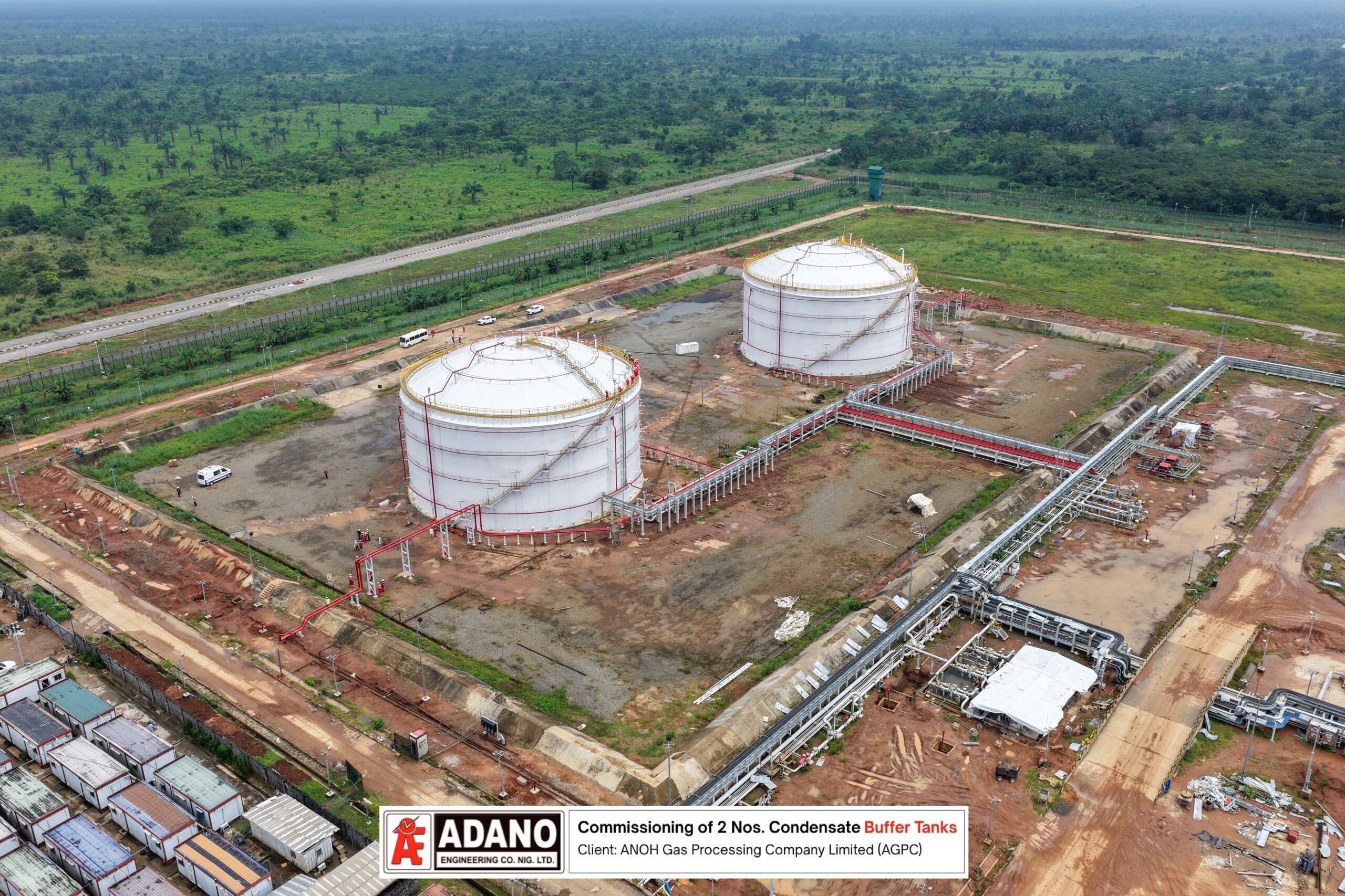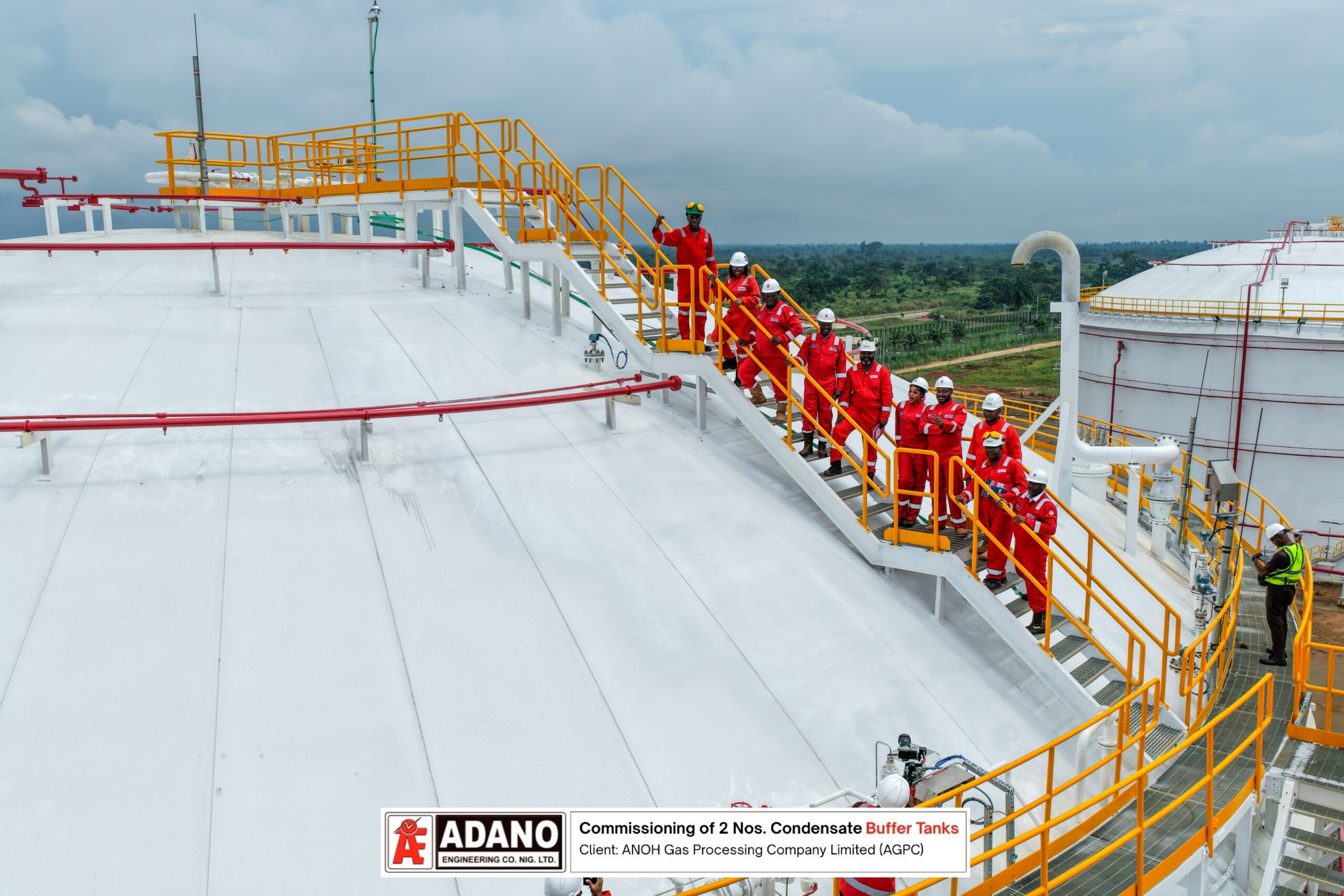 Adano Engineering Company Limited is proud to celebrate the successful completion and commissioning of two 100,000-barrel condensate buffer tanks at the ANOH Gas Processing Company Limited (AGPC) facility in Assa North, Ohaji South LGA, Imo State.